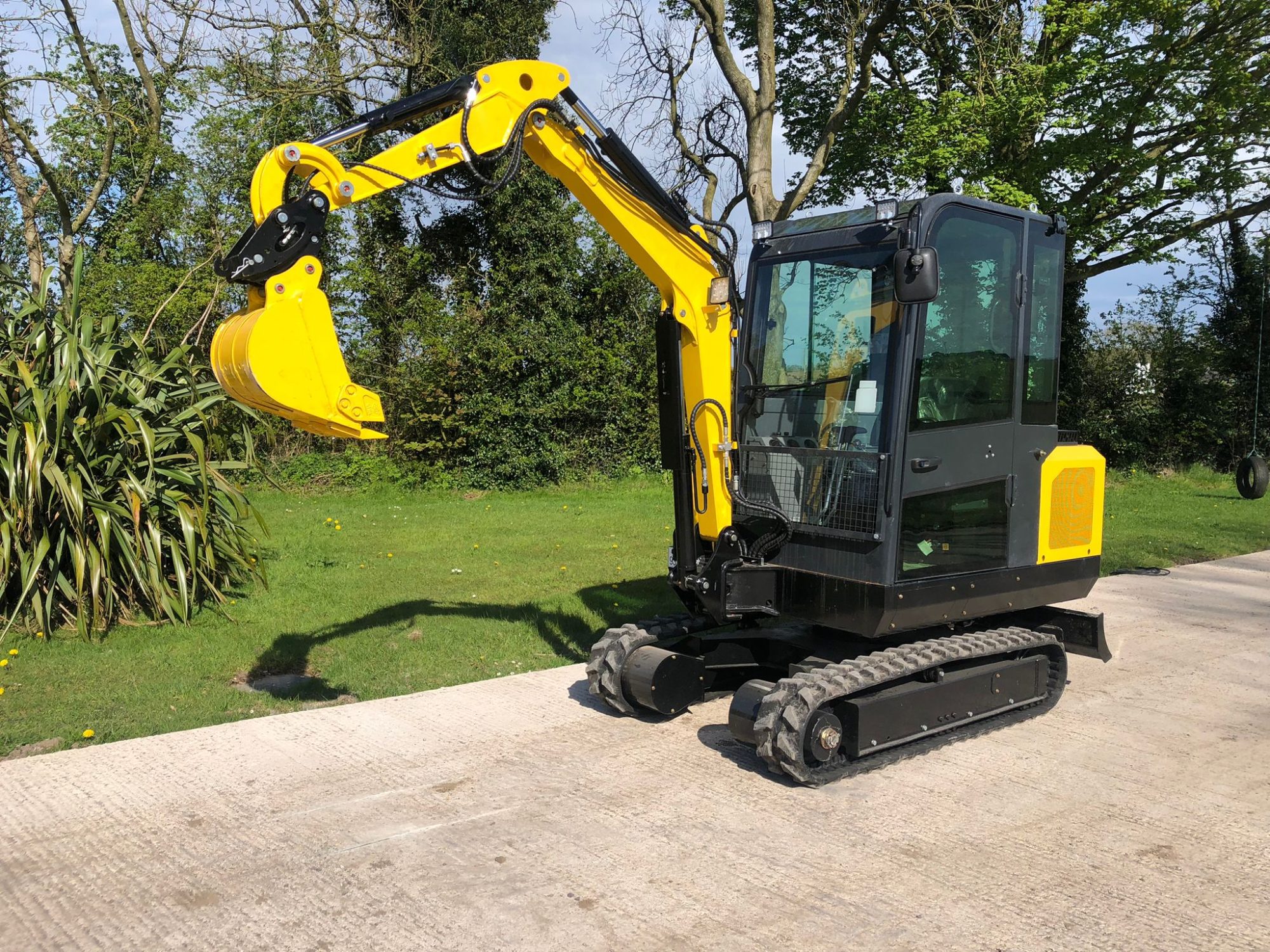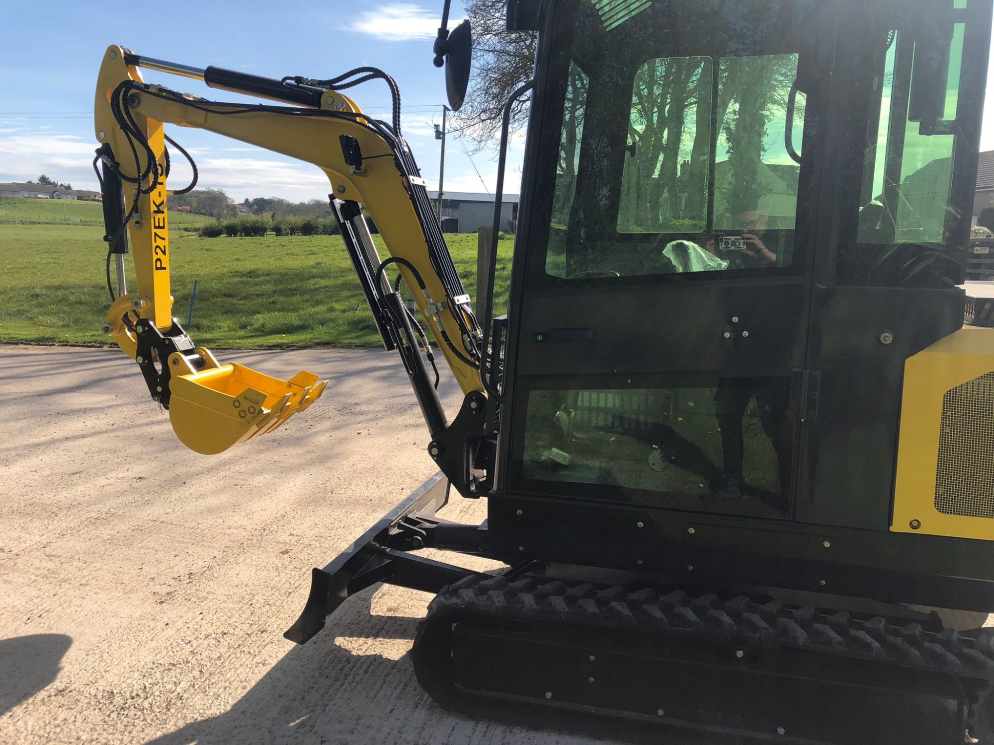 This fully enclosed excavator is suitable for anything. Commercial, Construction sector, Landscapers, Civil Engineering, Drainage Contractors and the agricultural sectors will all find this excavator a worthwhile investment.  Due to its fully enclosed heated cabin, the outdoors is where this machine lives. It comes with side swing and a fully automatic hydraulic quick hitch. It also boasts the Kubota D1105 engine. This engine is used in a wide variety of garden and construction equipment and has shown itself to be a world class engine with excellent reliability and durability. This 2.7T excavator can come with a range of attachments to make light work of any job. The attachments available include Narrow bucket, Digging bucket, Wide Digging bucket, Mud Bucket, Breaker/Pecker, Auger/Drill, Rake, Ripper, Grapple & Grab. This excavator is a must for any fleet and due to its weight of 2.7 tons can be pulled by a large van, 4 x 4 or small lorry.